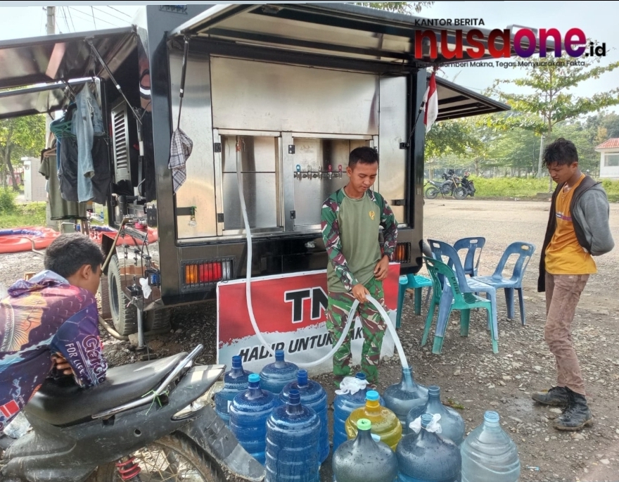 nusaone.id – Pidie Jaya – Warga Desa Manyang Cut, Kecamatan Meureudu, Kabupaten Pidie Jaya, menerima bantuan air minum steril dari TNI, Senin (16/1/2026). Bantuan ini diberikan melalui Mobil RO (Water Treatment Mobile) untuk memenuhi kebutuhan air bersih masyarakat yang selama ini terbatas.