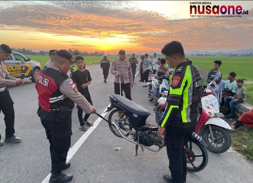 nusaone.id – Meureudu – Penertiban aktivitas balap liar dilakukan menyusul laporan warga yang merasa terganggu oleh keramaian serta suara knalpot sepeda motor yang tidak sesuai spesifikasi teknis.