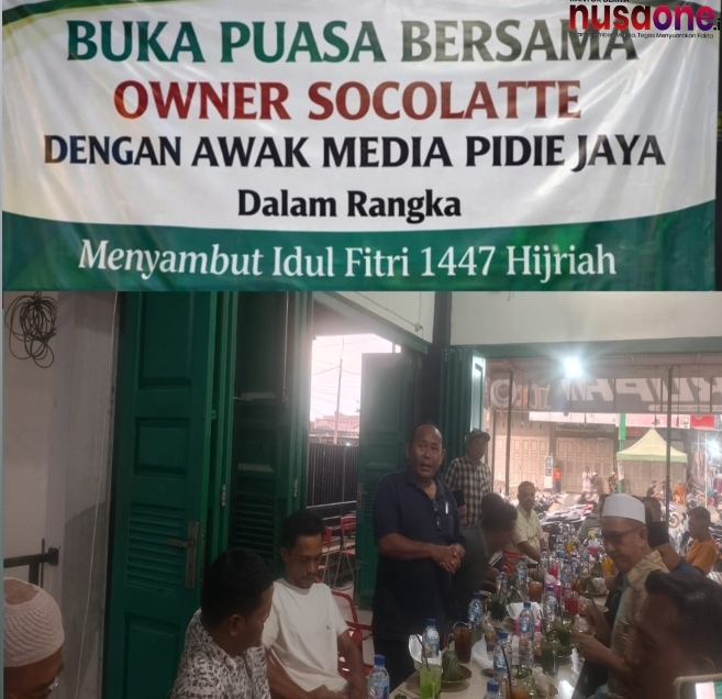nusaone.id – Meureudu – Suasana penuh keakraban dan kebersamaan terasa dalam kegiatan buka puasa bersama (bukber) yang digelar oleh owner Socollate, Irwan Ibrahim, bersama puluhan jurnalis di Kabupaten Pidie Jaya.