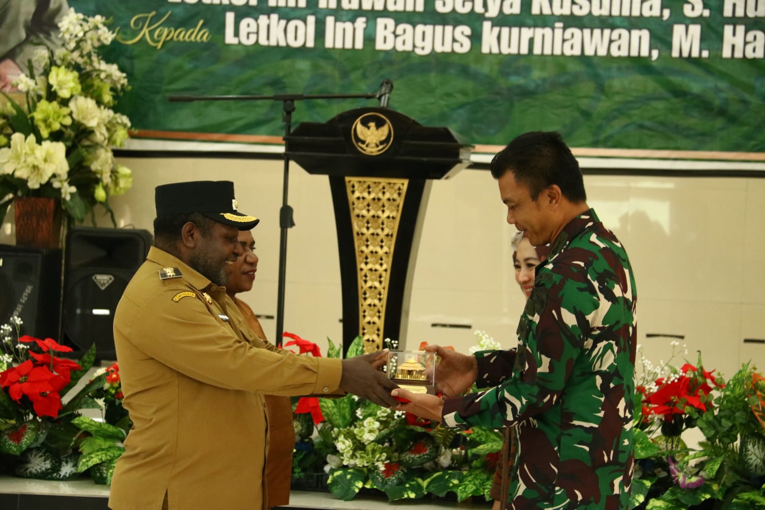 Nusaone.id |Puncak Jaya – Dansatgas Yonif 112/DJ Letkol Inf Fiska Bagus Tri Sunaryanto, menghadiri acara Lepas Sambut Dandim 1714/Puncak Jaya yang digelar secara khidmat dan penuh keakraban di Aula Kantor Bupati Puncak Jaya, Selasa (26/08/2025).