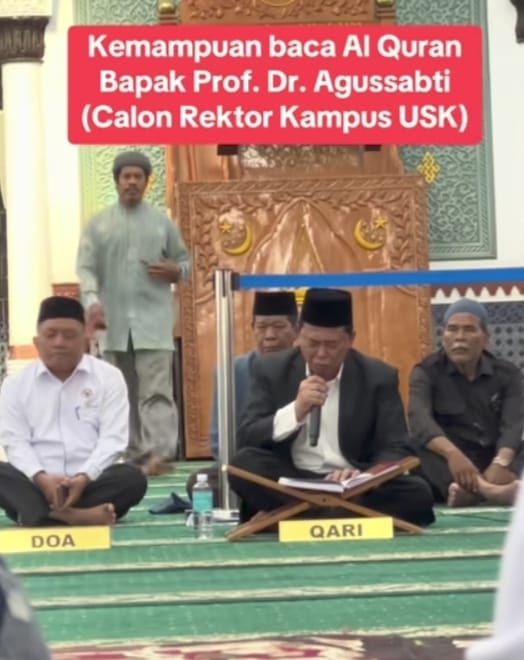 Nusaone.id |BANDA ACEH – Perjalanan karir yang inspiratif diraih oleh Prof. Dr. H. Agussabti, yang tidak hanya dikenal sebagai qori berbakat dengan lantunan ayat Al-Qur’an yang merdu dan tartil, tetapi kini juga muncul sebagai calon Rektor Universitas Syiah Kuala (USK). Sosoknya menjadi bukti bahwa prestasi dapat diraih melalui dedikasi dan pengembangan potensi dari berbagai aspek kehidupan.