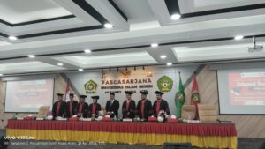 Disertasi berjudul “Analisis Salafiyah Kompetensi Lulusan Dayah Era Globalisasi” dipimpin Ketua Sidang Prof. Eka Sri Mulyani. Sejumlah penguji turut hadir, termasuk Prof. Muntasir A. Kadir sebagai penguji eksternal.