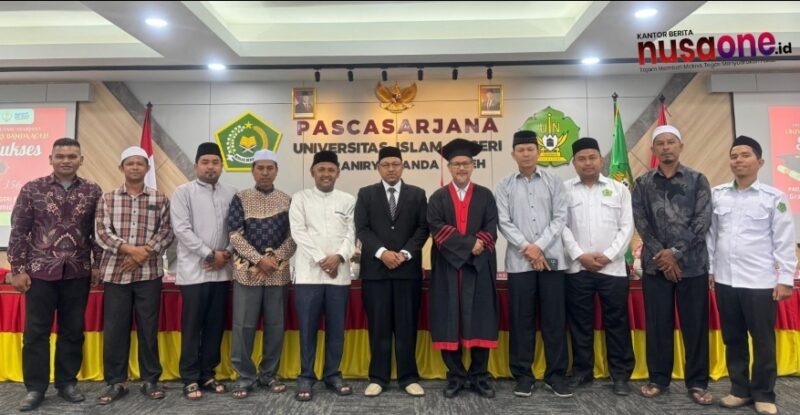 nusaone – Banda Aceh — Sidang terbuka disertasi Tgk Azmi Yudha Zulfikar, alumni Dayah MUDI Mesjid Raya Samalanga, berlangsung dinamis dan penuh perdebatan akademik di Aula Lantai 3 Pascasarjana UIN Ar-Raniry Banda Aceh, Selasa (21/4/2026).