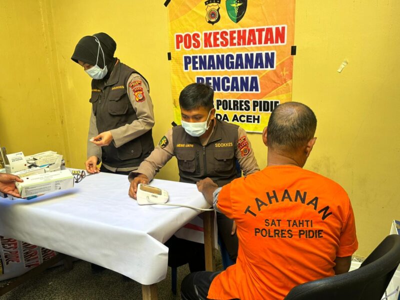 Sigli – Seksi Kedokteran dan Kesehatan (Si Dokkes) Polres Pidie melaksanakan pemeriksaan kesehatan rutin terhadap para tahanan yang berada di Rumah Tahanan Polres Pidie, Minggu (30/11/2025).