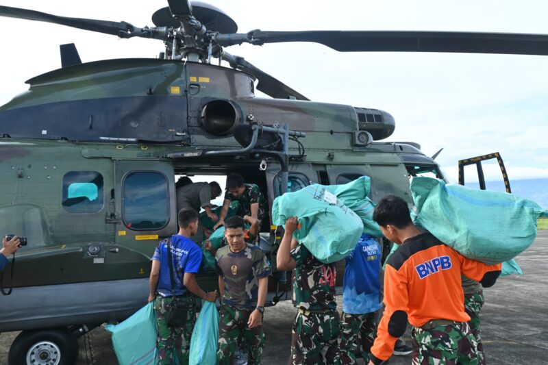 Hercules TNI AU Angkut 24 Ton Bansos ke Bener Meriah, Dua Heli Caracal Dikerahkan