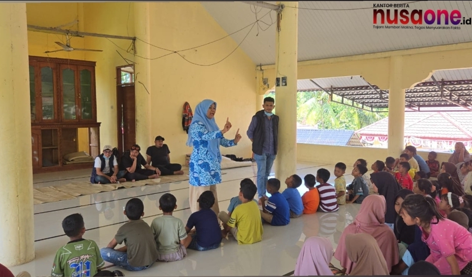 Salah satu pendamping kegiatan, Mursyidah, S.Pd., M.Pd., turut memberikan pendampingan langsung kepada anak-anak dengan pendekatan edukatif dan penuh empati.