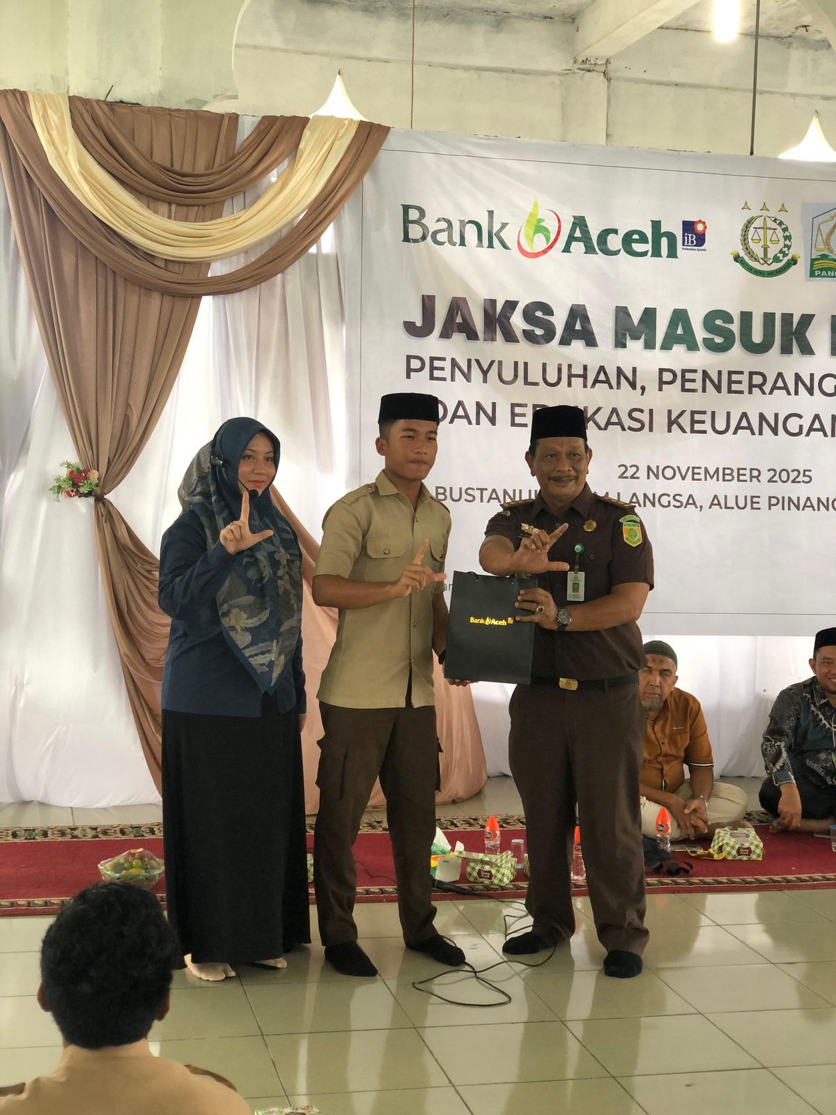 Langsa,  –  Kejaksaan Tinggi Aceh, bekerja sama dengan Dinas Pendidikan Dayah Aceh dan Bank Aceh Syariah, sukses menggelar kegiatan “Jaksa Masuk Dayah” di Dayah Bustanul Ulum, Alue Pinang, Langsa Timur, Kota Langsa, pada hari Sabtu, 22 November 2025. Program ini bertujuan memberikan edukasi hukum dan literasi keuangan syariah kepada para santri, mempersiapkan mereka menjadi generasi penerus yang berkualitas dan berintegritas.
