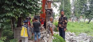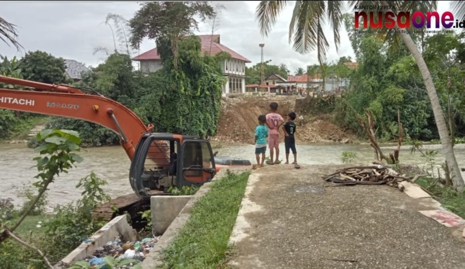 Satu unit alat berat excavator telah dikerahkan ke lokasi untuk membersihkan material yang menumpuk di tepi sungai sekaligus memperkuat bagian pondasi jembatan. Pada tahap awal, proses penanganan difokuskan pada pengamanan tebing yang terus terkikis agar kerusakan tidak semakin meluas.
