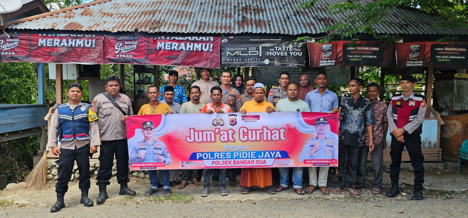 Jumat Curhat Polres Pidie Jaya: Dua Polsek Serentak Sosialisasi Jurdil dan Kamtibmas di Bandar Dua dan Jangka Buya