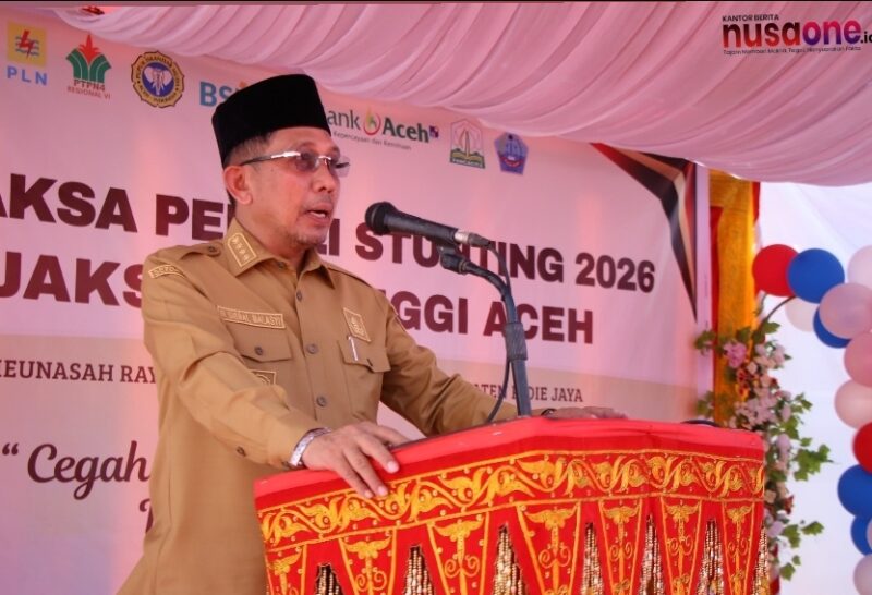 nusaone.id – Pidie Jaya – Kepala Kejaksaan Tinggi (Kajati) Aceh, Yudi Triadi, resmi meluncurkan program Adhyaksa Peduli Stunting di halaman Dinas Kesehatan Kabupaten Pidie Jaya, Senin (27/4/2026).