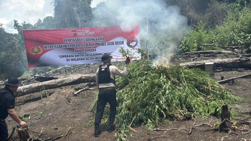 Kegiatan tersebut merupakan bagian dari Operasi Antik Seulawah 2026 yang dilaksanakan oleh Ditresnarkoba Polda Aceh bersama Polres Aceh Besar serta didukung TNI, pemerintah daerah, dan masyarakat.