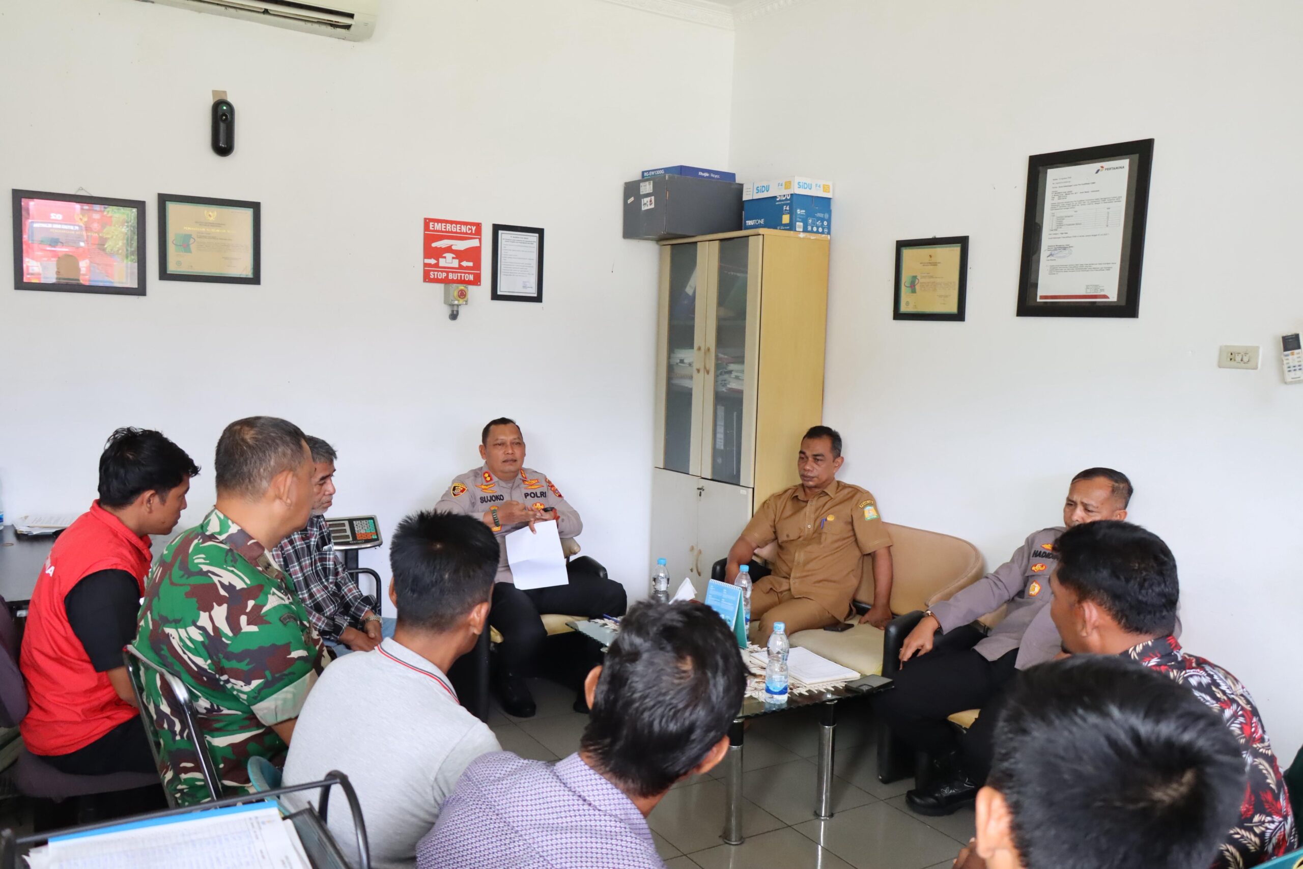 Aceh Besar,- Kapolres Aceh Besar AKBP Sujoko S.I.K.,M.H., menghadiri langsung kegiatan mediasi antara perwakilan masyarakat dengan pihak PT Marwah Gas Abadi terkait pendistribusian Gas LPG 3 Kg di depot isi Ulang SPBE Lampanah kecamatan Indrapuri kabupaten Aceh Besar, Senin (15/12/2025)