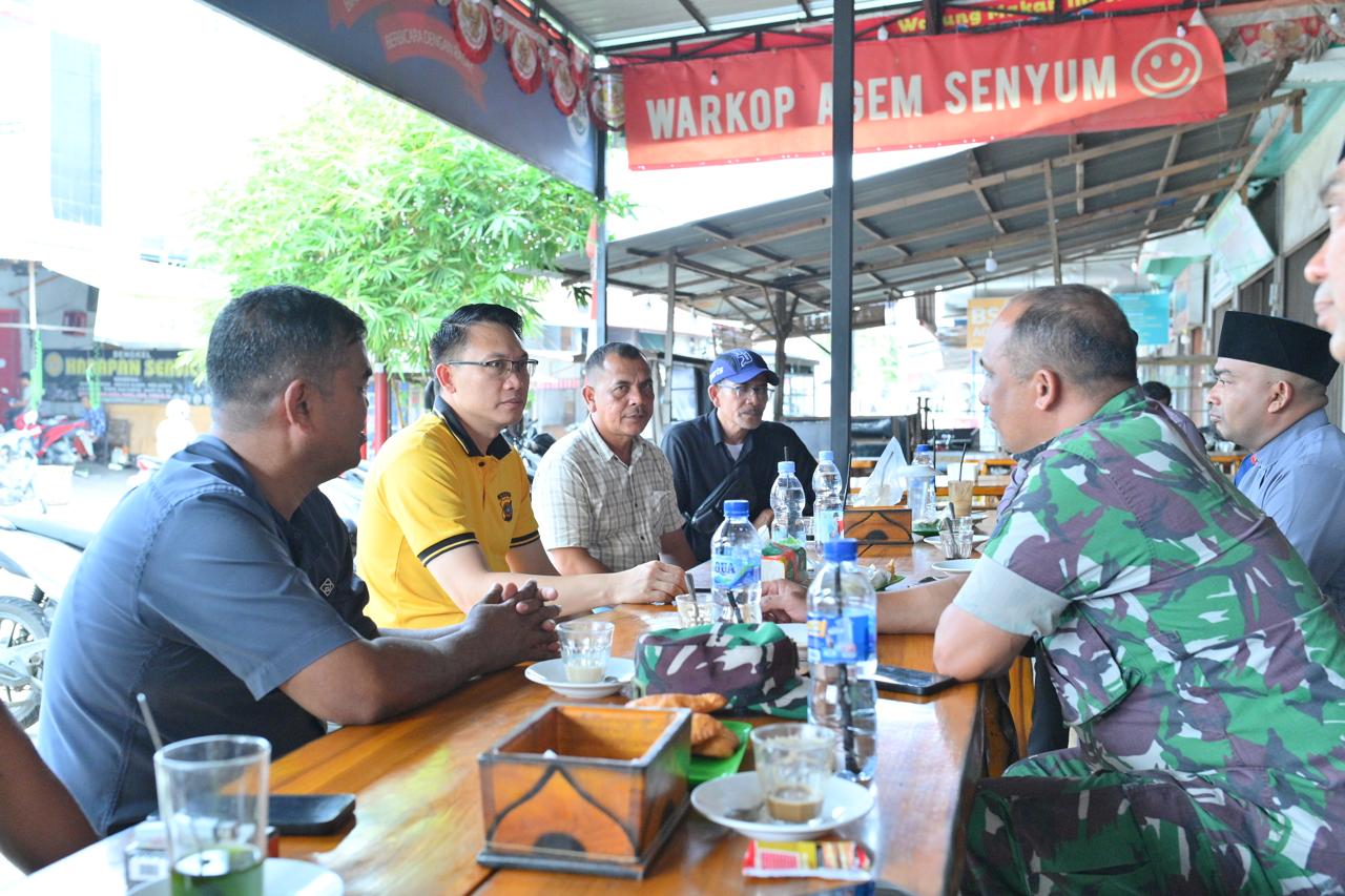 Sigli – Dalam rangka mempererat silaturahmi dan menampung aspirasi masyarakat, Kapolres Pidie AKBP Jaka Mulyana, SIK, MIK melaksanakan kegiatan Jumat Curhat yang berlangsung di salah satu warung kopi di Pasar Kecamatan Simpang Tiga, Kabupaten Pidie, Jumat (17/10/2025).