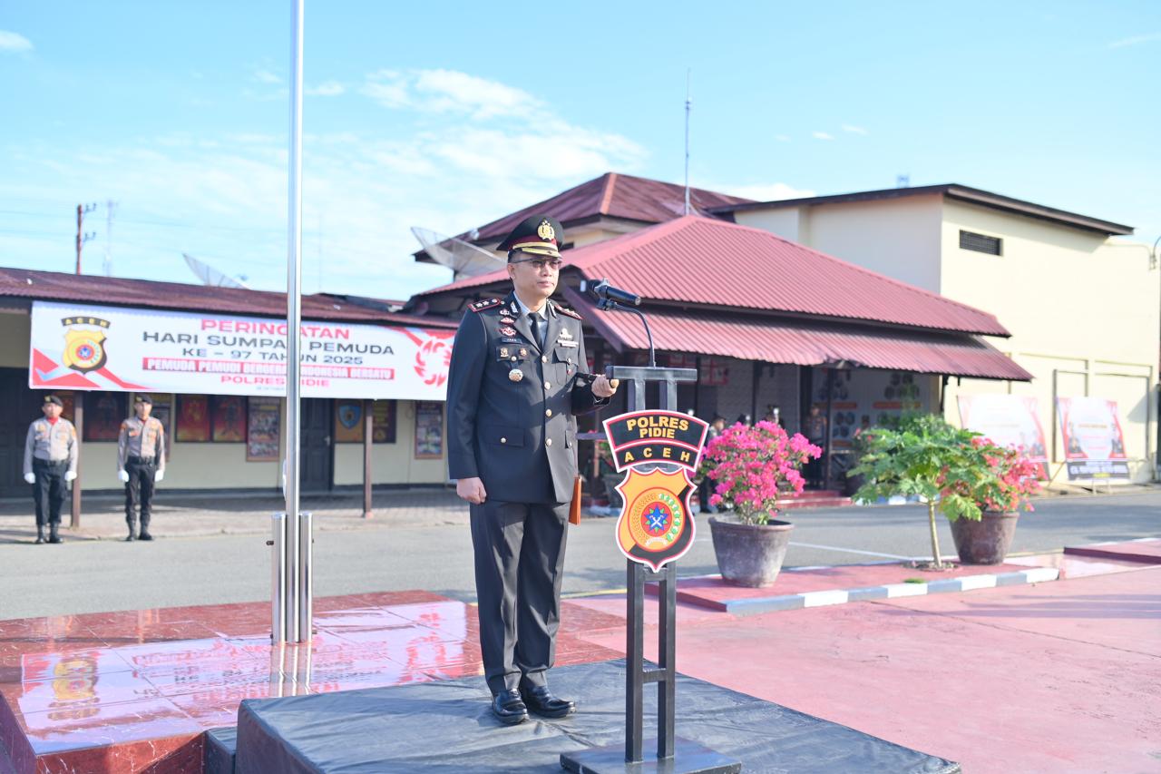 Sigli – Dalam rangka memperingati Hari Sumpah Pemuda ke-97 Tahun 2025, Kepolisian Resor Pidie melaksanakan upacara yang berlangsung dengan khidmat di Lapangan Apel Polres Pidie, Selasa, (28/10/ 2025).