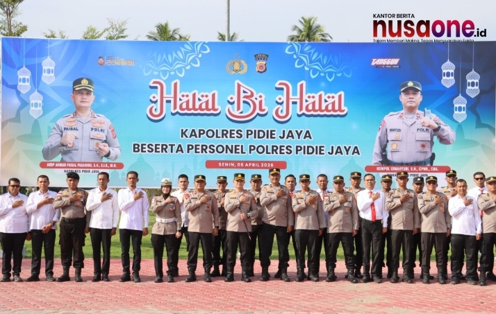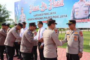 nusaone.id – Meureudu— Polres Pidie Jaya menggelar kegiatan Halal Bihalal pasca perayaan Idul Fitri 1447 Hijriah dan pelaksanaan Operasi Ketupat Seulawah 2026, Senin (6/4/2026).