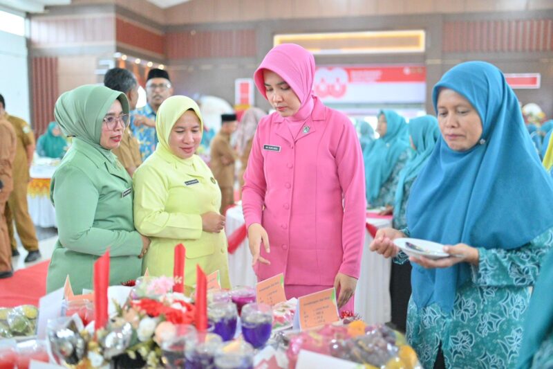 Sigli – Ketua Bhayangkari Cabang Pidie, Ny. Ruri Jaka, menghadiri kegiatan Lomba Kreasi Menu Sehat Berbasis Pangan Lokal, B2SA (Beragam, Bergizi, Seimbang dan Aman) serta Serba Ikan yang berlangsung di Gedung Pidie Convention Center (PCC) Kabupaten Pidie, Selasa (30/9/2025).