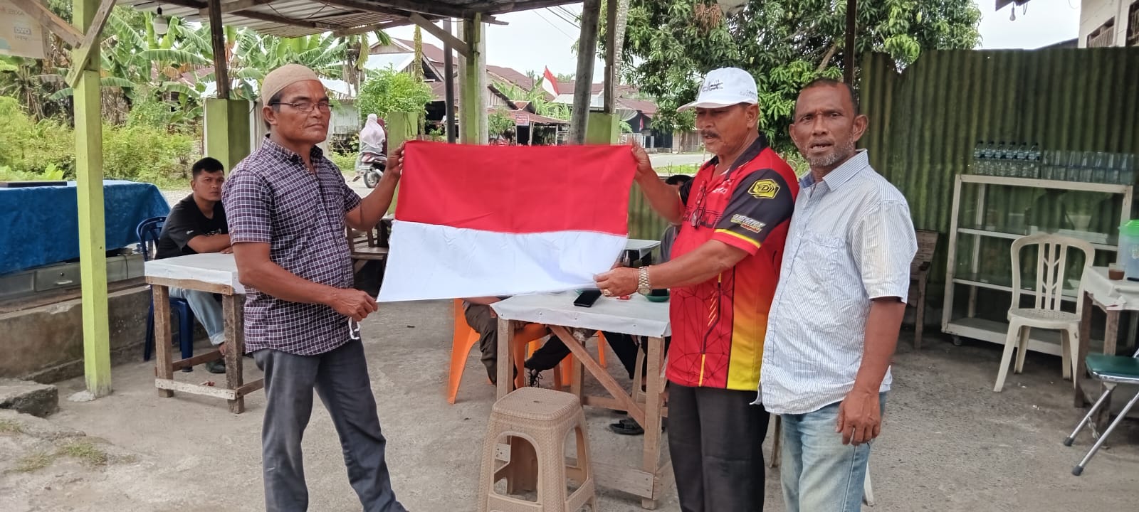 Pada kesempatan tersebut, Syamsul Rizal secara simbolis menyerahkan bendera merah putih kepada Sofian, salah seorang warga Gampa. Selain itu, puluhan bendera juga dibagikan kepada pengendara yang melintas di jalan.