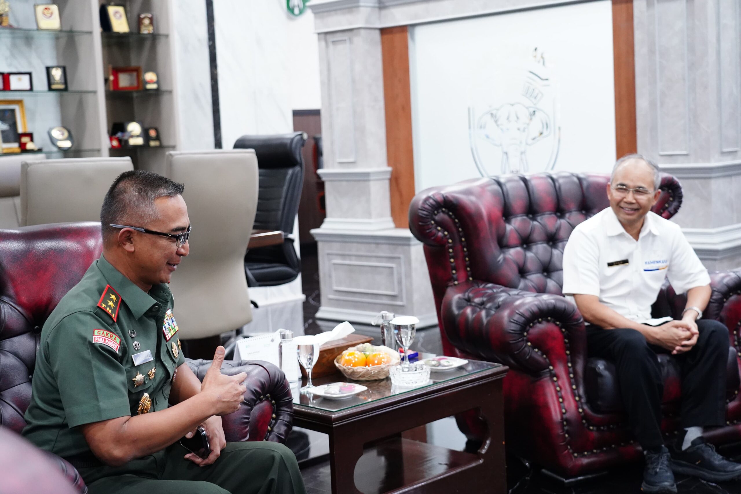 Banda Aceh – Panglima Komando Daerah Militer Iskandar Muda (Pangdam IM) Mayor Jenderal TNI Joko Hadi Susilo, S.I.P., menerima audiensi Kepala Kantor Wilayah Kementerian Keuangan (Kakanwil Kemenkeu) Provinsi Aceh, Bpk. Paryan, beserta rombongan di ruang kerja Pangdam IM, Makodam Iskandar Muda, Banda Aceh, pada Senin (27/10/2025).