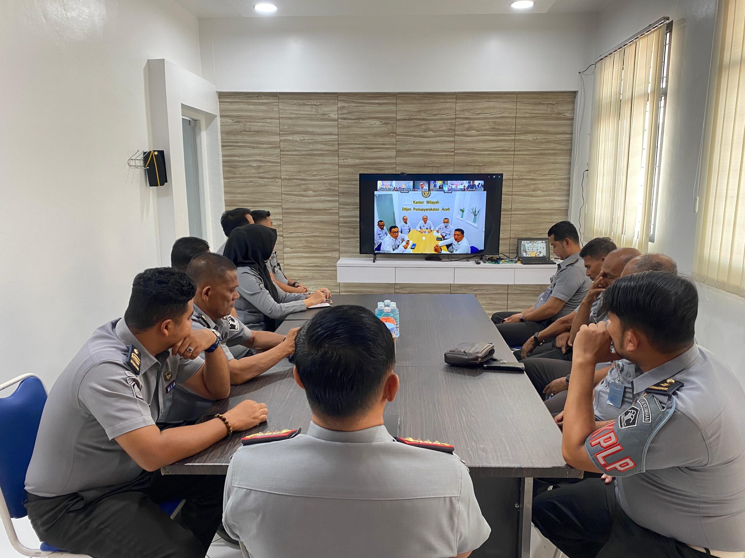 Kepala Lapas Kelas IIA Banda Aceh, Edi Cahyono, bersama Pejabat Struktural mengikuti kegiatan tersebut melalui Zoom.