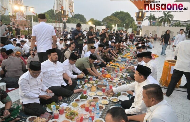 nusaone.id – Banda Aceh – Ribuan masyarakat memadati halaman Masjid Raya Baiturrahman untuk mengikuti kegiatan buka puasa bersama dalam rangka peringatan malam Nuzulul Qur’an, Jumat (6/3/2026).