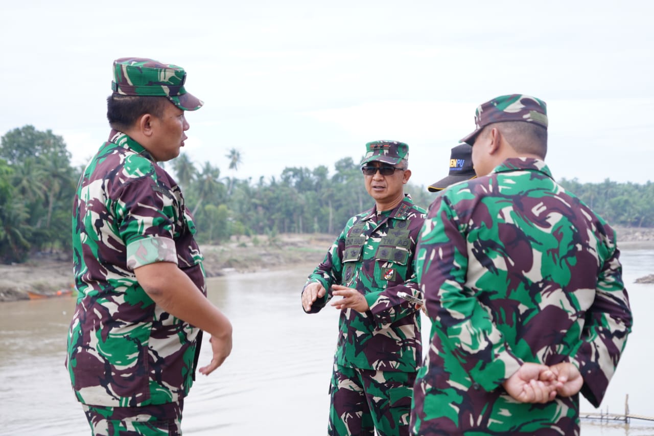 Bireuen — Panglima Komando Daerah Militer Iskandar Muda (Pangdam IM) Mayor Jenderal TNI Joko Hadi Susilo, S.I.P., meninjau secara langsung proses pembangunan Jembatan Kuta Blang yang sebelumnya terputus akibat bencana alam banjir yang melanda wilayah Aceh. Peninjauan dilakukan di lokasi jembatan yang berada di atas Sungai Krueng Tingkeum, Kecamatan Kuta Blang, Kabupaten Bireuen, Sabtu (20/12/2025), sebagai bentuk perhatian dan pengawasan pimpinan terhadap percepatan pemulihan infrastruktur vital pasca bencana.