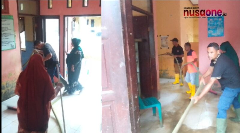 nusaone.id – Pidie Jaya – Polindes Gampong Manyang Lancok, Kecamatan Meureudu, dibersihkan dari sisa-sisa lumpur pascabanjir yang terjadi beberapa bulan lalu, Selasa (17/2/2026).