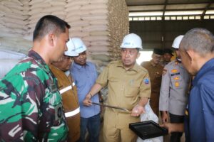Sebelum pendistribusian, Bupati Sibral Malasyi secara langsung mengecek kualitas beras untuk memastikan bantuan pangan berada dalam kondisi baik, layak konsumsi, dan aman diterima masyarakat.