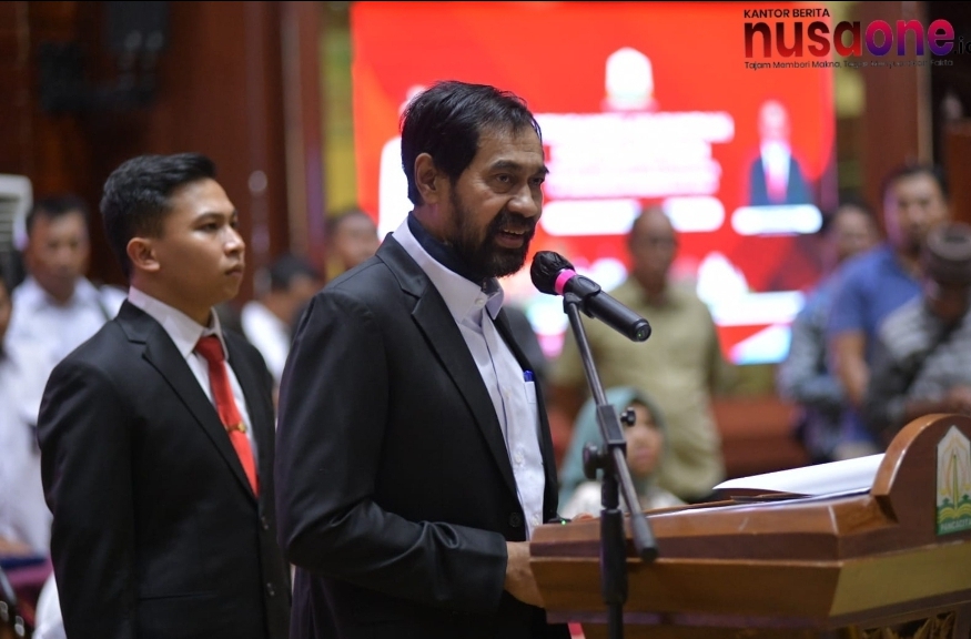 nusaone.id – BANDA ACEH — Muzakir Manaf atau Mualem melantik 25 pejabat pimpinan tinggi pratama (eselon II) di lingkungan Pemerintah Aceh, Jumat malam, 27 Februari 2026. Prosesi berlangsung di Anjong Mon Mata, Banda Aceh, usai shalat tarawih.