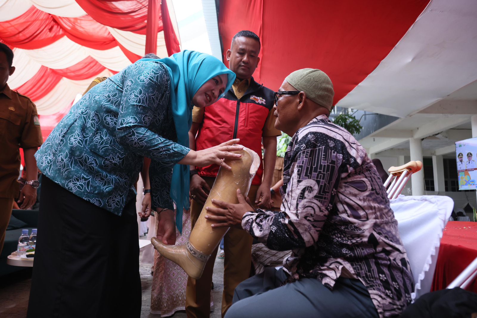 Dalam kegiatan tersebut, dilakukan penyerahan bantuan kaki palsu yang langsung dipasangkan di lokasi kegiatan. Penyerahan bantuan ini didampingi Ketua TP PKK Aceh, Marlina Muzakir, bersama Pelaksana Tugas (Plt.) Kepala Dinas Sosial Aceh. Sebanyak 98 orang menerima manfaat bantuan kaki palsu.