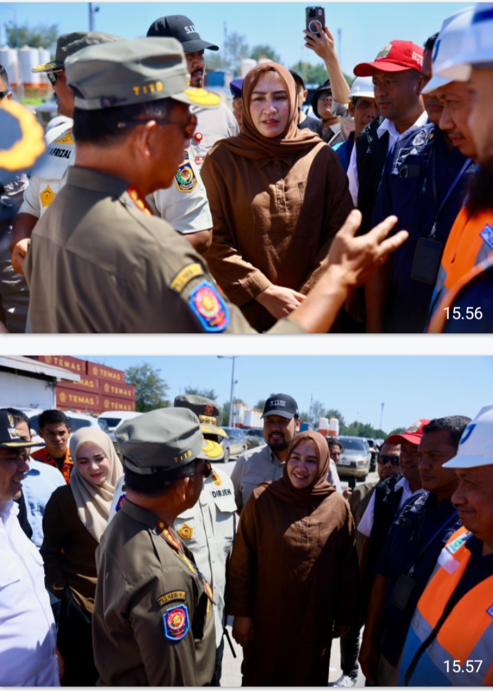 Aceh Utara – Ketua TP PKK Aceh, Marlina Muzakir, mendampingi Menteri Dalam Negeri RI, Tito Karnavian, saat meninjau kesiapan Pelabuhan Krueng Geukueh, Minggu (30/11/2026). Peninjauan ini dilakukan untuk memastikan jalur laut dapat menopang distribusi logistik bagi wilayah terdampak banjir dan longsor di Aceh.