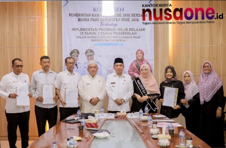 Pemerintah Kabupaten (Pemkab) Pidie Jaya bersama Bunda PAUD Pidie Jaya meneguhkan komitmen dalam mendukung implementasi program Wajib Belajar 13 Tahun, yang dimulai dari pendidikan pra-sekolah (PAUD) hingga jenjang SMA. Peneguhan komitmen ini berlangsung di Ruang Rapat Bupati Pidie Jaya, Jumat (26/9/2025).
