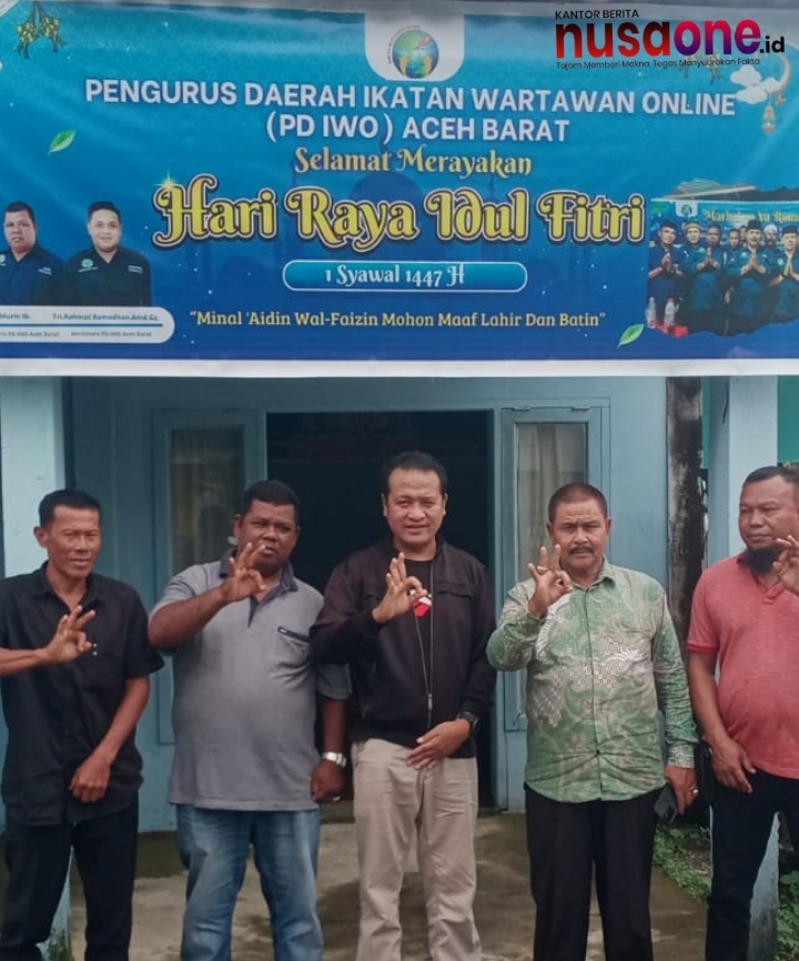 nusaone.id – Meulaboh – Ketua Pengurus Wilayah (PW) Ikatan Wartawan Online (IWO) Provinsi Aceh, Chairan Manggeng, melakukan kunjungan silaturahmi ke kantor Pengurus Daerah (PD) IWO Aceh Barat yang berlokasi di Gampong Suak Ribe, Kecamatan Johan Pahlawan, Sabtu (28/3/2026).