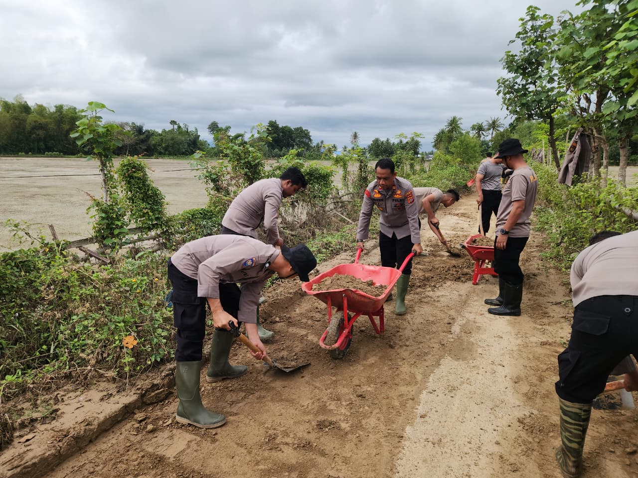 Kapolres Pidie AKBP Jaka Mulyana, SIK, MIK menyampaikan bahwa kegiatan gotong royong ini merupakan bentuk nyata kepedulian Polri terhadap masyarakat yang terdampak bencana, sekaligus upaya percepatan pemulihan kondisi lingkungan dan akses transportasi warga.