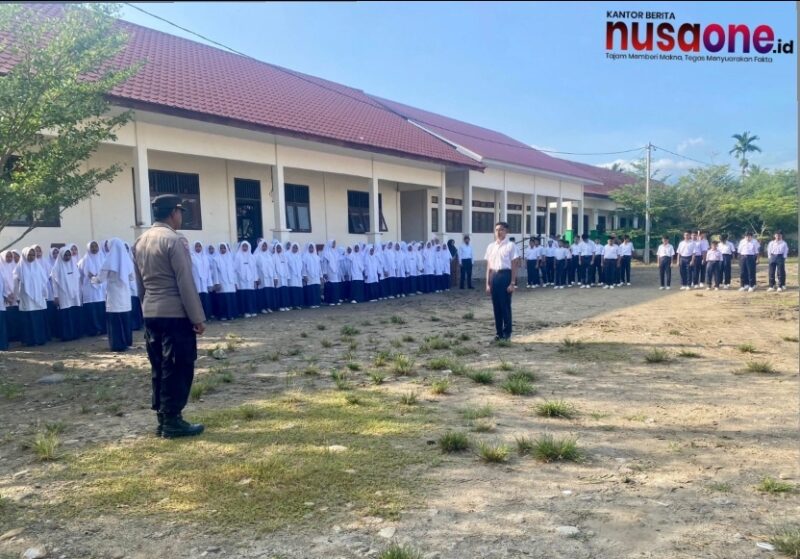nusaone.id – Meureudu – Polres Pidie Jaya terus menunjukkan komitmennya dalam membangun kedekatan dengan generasi muda melalui program “Polisi Saweu Sikula”. Kegiatan pembinaan upacara bendera kembali digelar di SMPN Ulumul Quran Meureudu, Kabupaten Pidie Jaya, Senin (20/4/2026), dengan suasana penuh semangat dan keakraban.
