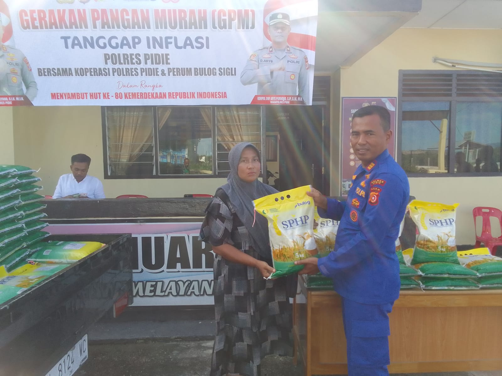 Kapolres Pidie AKBP Jaka Mulyana, SIK, MIK melalui Kapolsek Muara Tiga, Iptu Jemmy Rinaldi, menyampaikan bahwa kegiatan ini merupakan bentuk kepedulian Polri bersama pemerintah dalam membantu masyarakat menghadapi tekanan inflasi dan menjaga daya beli.
