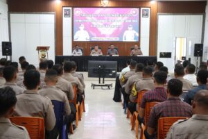 “Personel di lapangan harus siap melakukan langkah persuasif maupun tindakan tegas terhadap pihak-pihak yang berupaya mengganggu kelancaran tahapan pemungutan dan penghitungan suara,” tegas Kapolres melalui Kasi Humas AKP Mahruzar Hariadi.