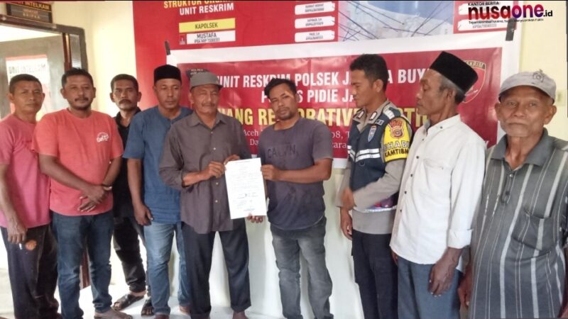 Meureudu –nusaone.id Polsek Jangka Buya Polres Pidie Jaya berhasil memediasi perselisihan antara dua warga Gampong Reului Mangat, Kecamatan Jangka Buya, yang terlibat cekcok terkait jadwal pemotongan padi. Upaya mediasi dilakukan melalui pendekatan humanis dan mekanisme Restorative Justice pada Sabtu (15/11/2025).