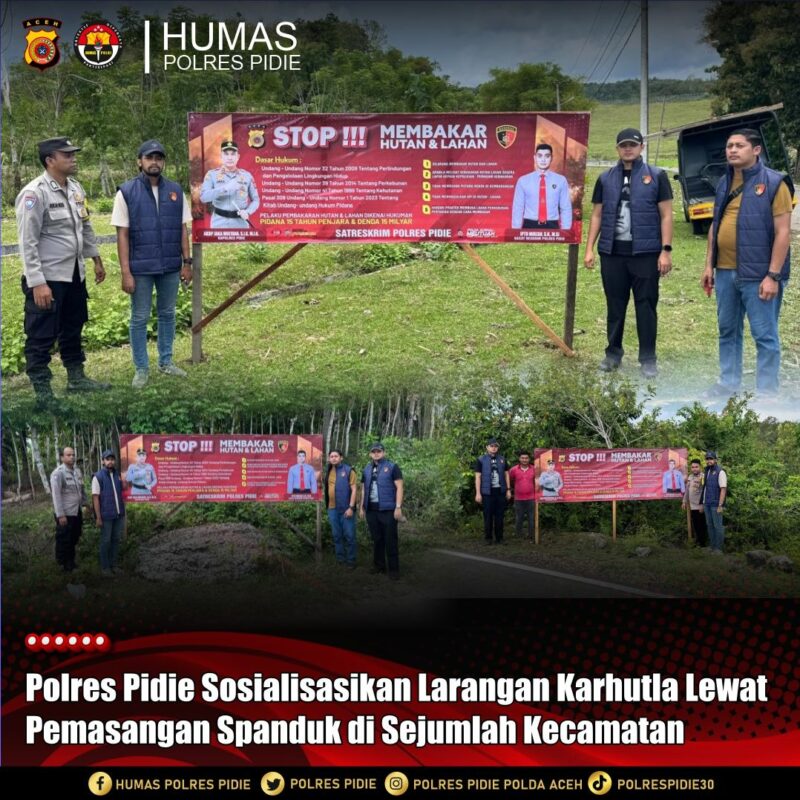 ‎Polres Pidie Sosialisasikan Larangan Karhutla Lewat Pemasangan Spanduk di Sejumlah Kecamatan