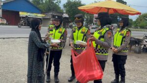 Selain patroli, Polwan Polres Pidie Jaya juga menggelar kegiatan Jumat Berkah dengan membagikan 40 kotak nasi kepada masyarakat sekitar. Aksi sosial ini disambut positif oleh warga yang merasa terbantu dan senang dengan kehadiran Polwan.