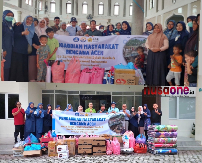 Program Profesor Indonesia bekerja sama dengan Fakultas Keperawatan Universitas Syiah Kuala (FKeP USK) melaksanakan kegiatan pengabdian masyarakat bagi warga terdampak banjir di Desa Genteng dan Desa Seunong, Kecamatan Meurah Dua, Kabupaten Pidie Jaya, Aceh, Sabtu, 27 Desember 2025.