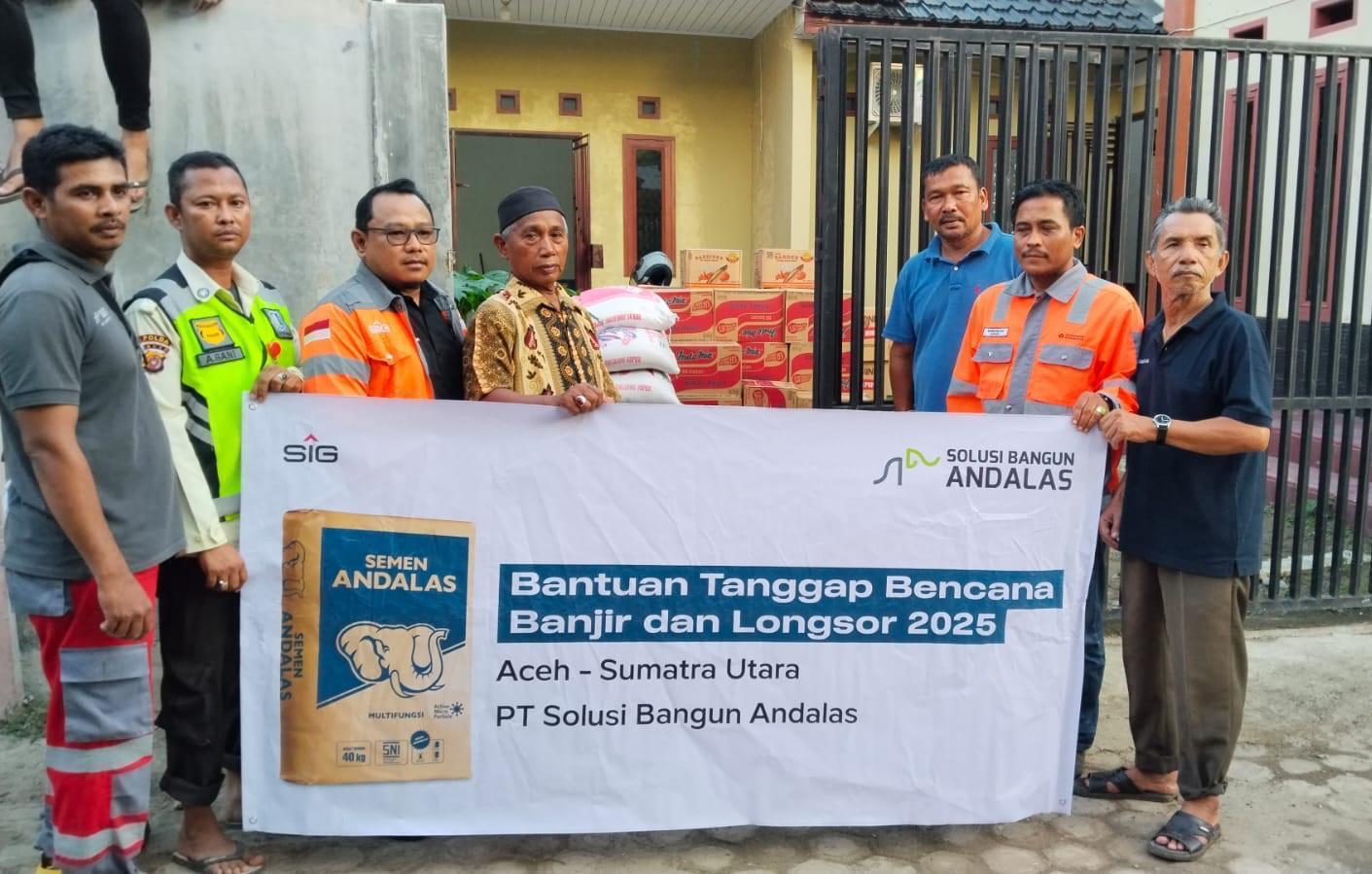 PT Solusi Bangun Andalas (“Solusi Bangun Andalas/Perusahaan”) bagian dari PT Semen Indonesia (Persero) Tbk (SIG) bergerak cepat mengirimkan bantuan masa panik ke sejumlah titik pengungsian di Banda Aceh, posko BPBD Kabupaten Aceh Besar, Desa Tambon Baroh Kecamatan Dewantara Kabupaten Aceh Utara dan Desa Blang Naleung Mameh Kecamatan Muara Satu Kota Lhokseumawe. Bantuan paket sembako yang diberikan Perusahaan terdiri dari beras, sarden, mi instan dan biskuit.