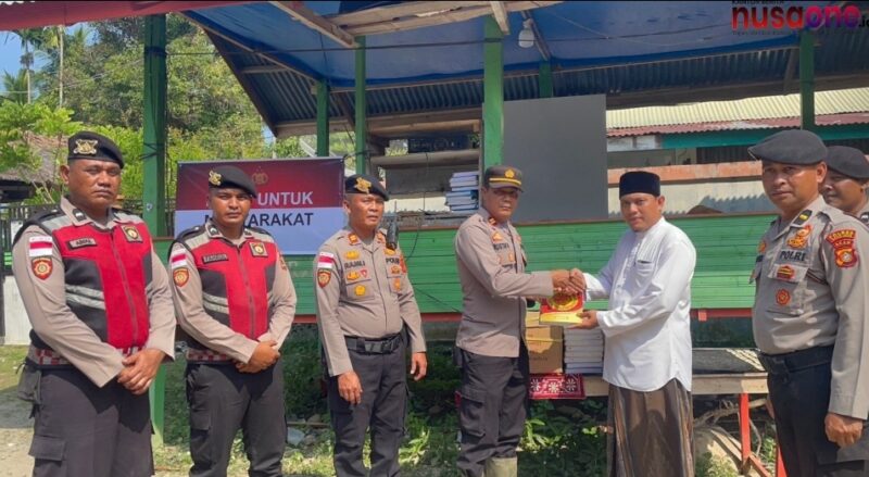Selanjutnya, Kasat Samapta Polres Pidie Jaya Iptu Ramli bersama Kapolsek Jangka Buya Iptu Mustafa menyerahkan bantuan 50 Al-Qur’an kepada Dayah Madinattudiniyah Babul Munajah di Kecamatan Jangka Buya.