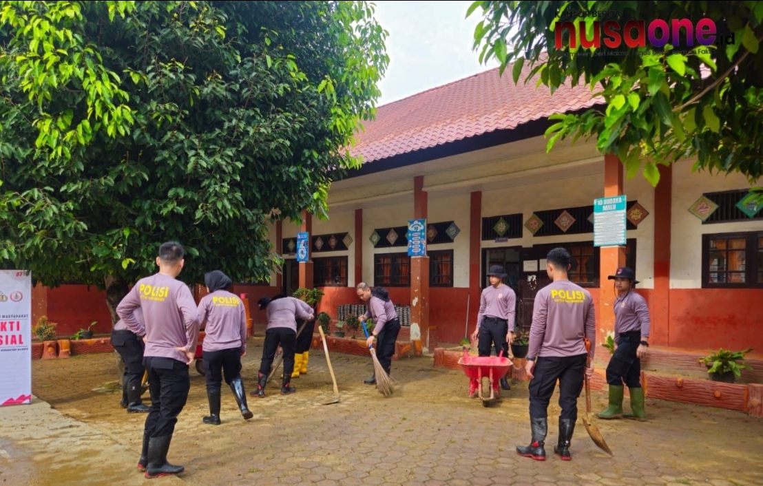 Sebanyak 50 personel terlibat dalam kegiatan itu, terdiri dari 40 personel Polri dan 10 orang masyarakat. Mereka membersihkan sisa lumpur, sampah, serta material banjir yang masih menumpuk di lingkungan sekolah.