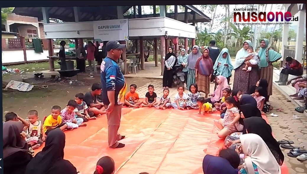 Kegiatan tersebut bertujuan untuk membantu memulihkan kondisi psikologis anak-anak yang terdampak bencana banjir. Melalui permainan dan hiburan sederhana, anak-anak diajak kembali ceria di tengah suasana pengungsian.