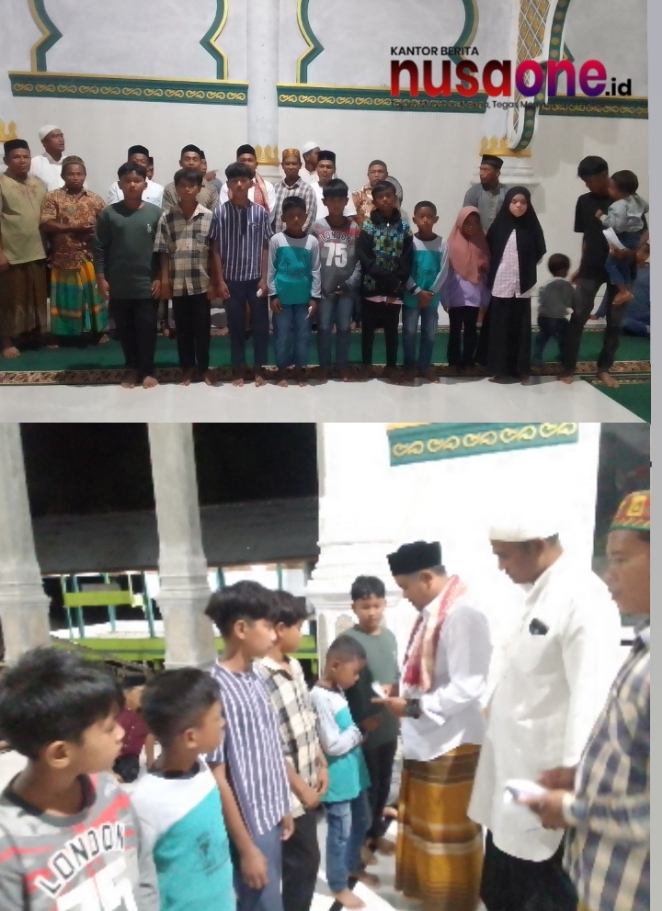 Majelis Ta’lim bapak-bapak di balee Mesjid Iskandar muda Kuta Batee, menggelar kegiatan keagamaan dalam rangka menyambut bulan suci Ramadhan yang dirangkai dengan penyerahan santunan kepada anak yatim dan piatu, Kamis malam, 12 Februari 2026,