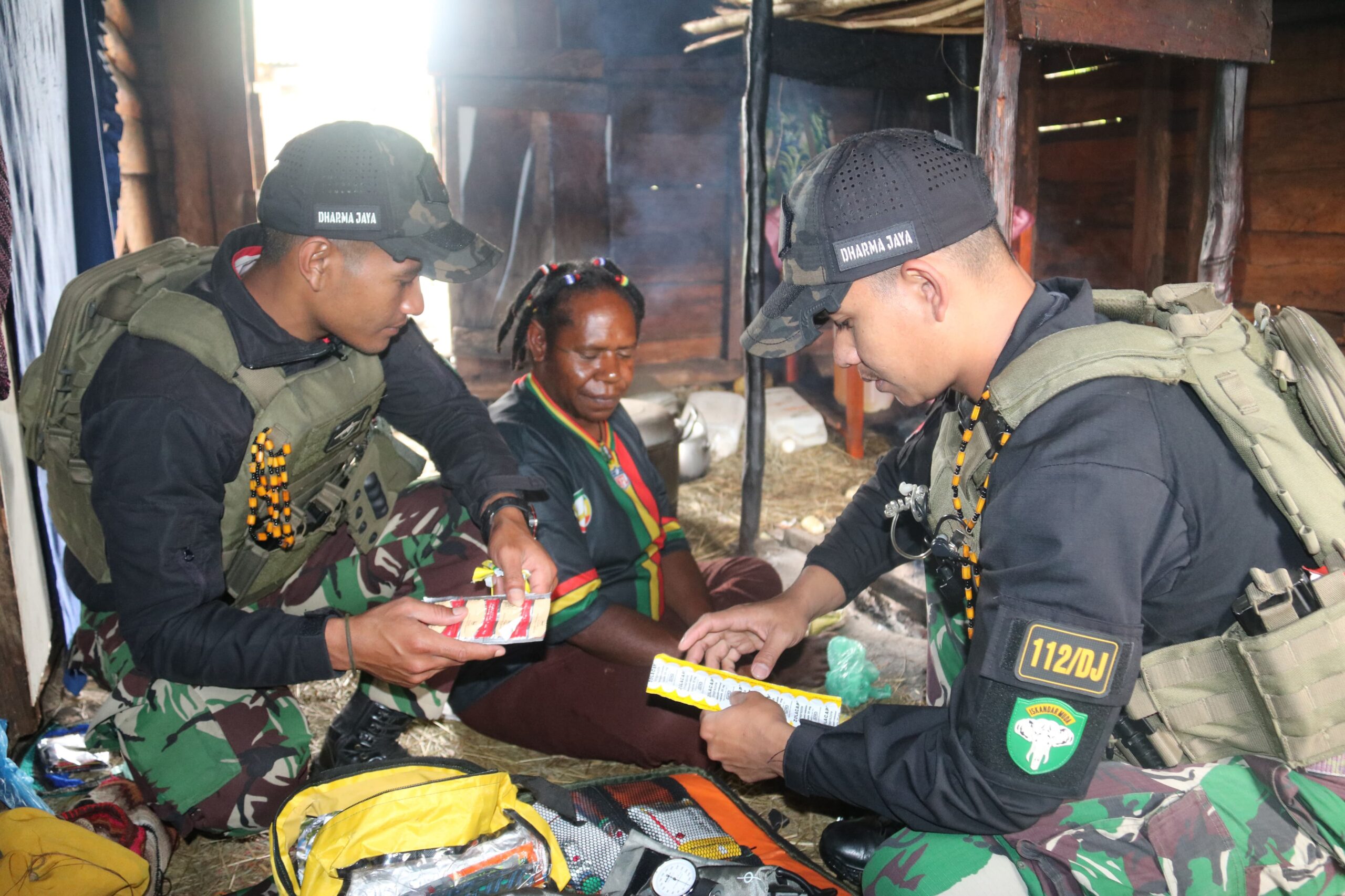 Puncak Jaya – Satgas Yonif 112/DJ Pos Kota Baru Gelar Pengobatan secara Door to Door di Kampung Pagaleme, Puncak Jaya, Papua Tengah, Minggu (21/09/2025).