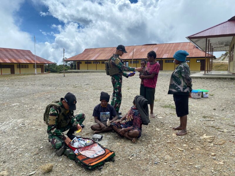 Papua Tengah – Prajurit Tim Kesehatan Pos Nume Satgas Yonif 112/DJ gelar Free Medical Care secara langsung di lapangan bagi Warga Kampung Karubaga Distrik Jigonikme Kabupaten Puncak Jaya Provinsi Papua Tengah, Selasa (30/09/2025).