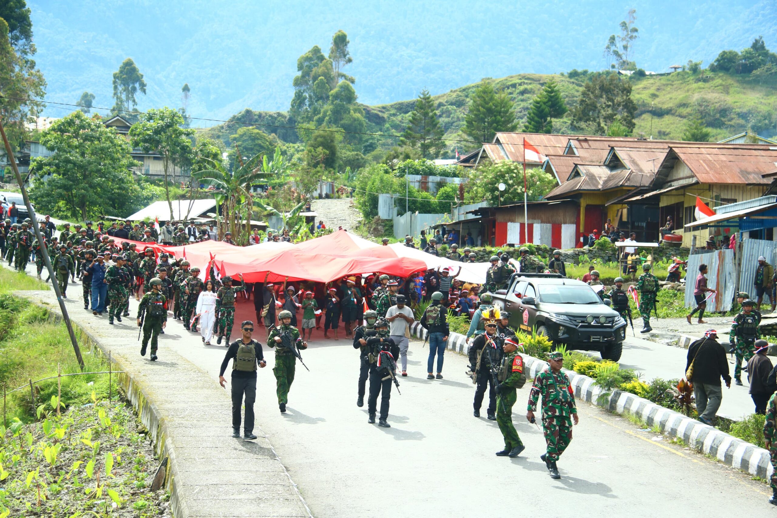 Satgas Yonif 112/DJ menghadiri dan mengamankan Kirab Merah Putih di Puncak Jaya
