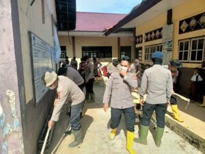 Meureudu – nusaone.id — Polres Pidie Jaya memimpin kegiatan gotong royong pemulihan pascabencana banjir di SD Negeri 2 Meureudu, Gampong Meunasah Lhok, Kecamatan Meureudu, Kabupaten Pidie Jaya, Senin (19/1/2026).