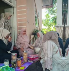 Kebersamaan semakin terasa dengan hadirnya berbagai hidangan khas Lebaran yang disajikan oleh tuan rumah. Momen makan bersama menambah kehangatan dalam silaturahmi tersebut.